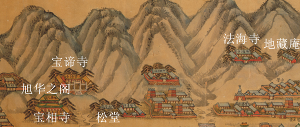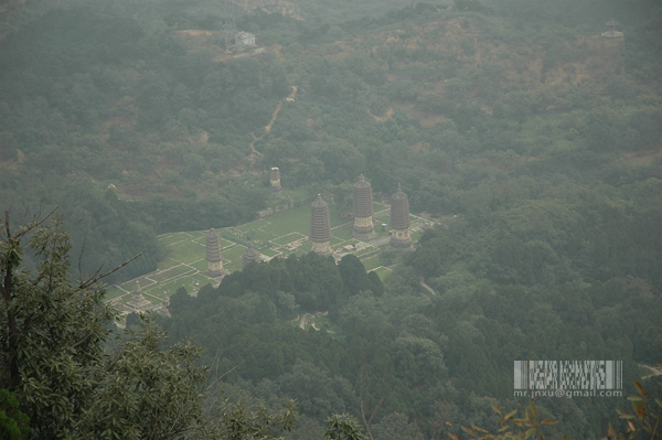 在钟亭平台俯瞰寺址和八塔