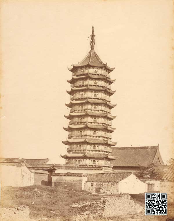 苏州是历史名城,古迹众多。可惜赶上太平天国运动,古城数度被毁。待到战争结束,正值摄影术从广州发展到南京、苏州和上海,沧桑的历史名城吸引着西方摄影师的目光,因此有不少拍摄于1850-1870年代的苏州照片留下来,比如我知道的就有开元寺无梁殿、双塔和灵岩寺虎丘塔等。这座人间天堂,我小学四年级暑假第一次去,现在唯一有印象的就是在枫桥下拍过照片。前几天去苏州出差,忙里偷闲,终于在一天下午报恩寺停止售票前和同事进去转了转。这趟出差匆忙,没有认真准备功课,最后离开北京的时候连一张苏州的老照片都没带,怨念不已。