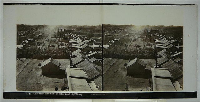 几个月前有三张玻璃立体照片在国外拍卖,三张照片的影像我之前都未见过,仅能判断出是北京,拍摄时间较早,大概在1860年代。后来这三张照片均以每张两千多美金的价格成交!这些照片是什么时间由谁拍摄的,我在朋友Bennett的新书中找到了答案。