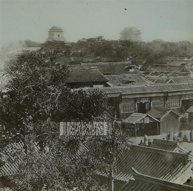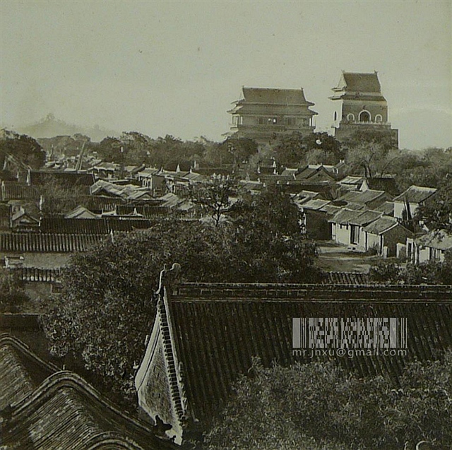 由西南向东北远眺钟楼和鼓楼