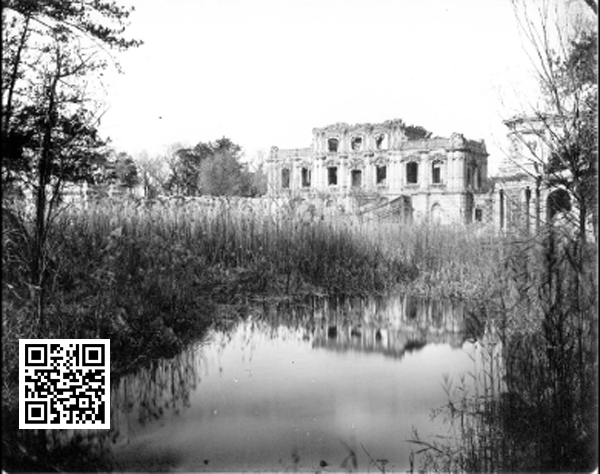 奥尔末1873年拍摄的圆明园谐奇趣主楼残迹,残破但是仍然金碧辉煌的谐奇趣隐匿在树丛和灌木中,显得十分神秘,而水中的倒影更增添了这种气氛。