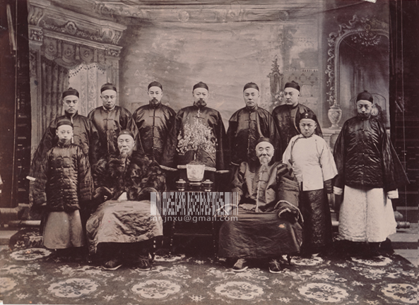 最近从两个不同的委托人处收到了原是一组的李鸿章照片,分别是李鸿章、李翰章家男丁合影和李鸿章、李翰章兄弟合影。