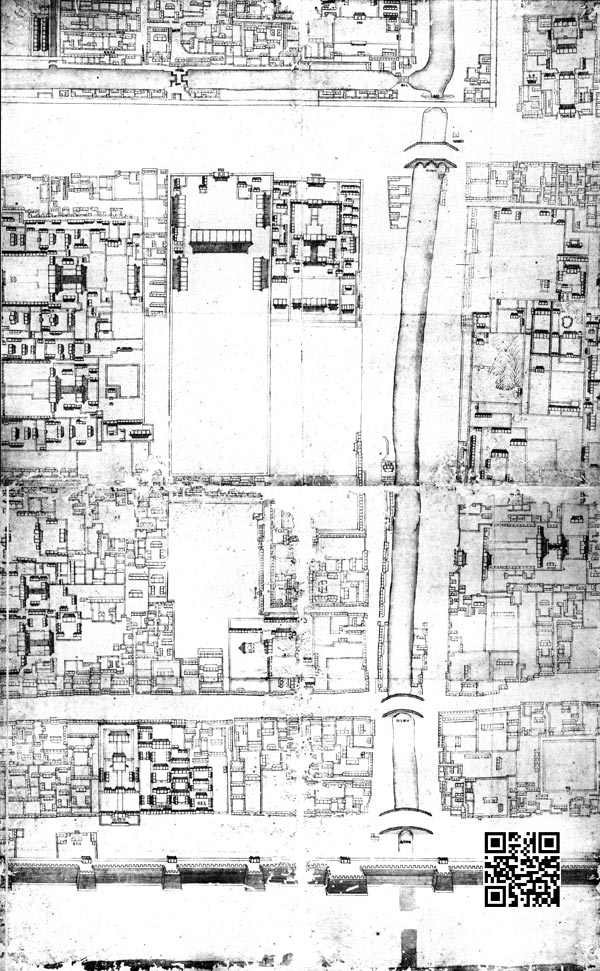 佚名于1901年在内城城墙上向北拍摄的御河,图片出自德国公使穆莫的相册,三座桥都能看到