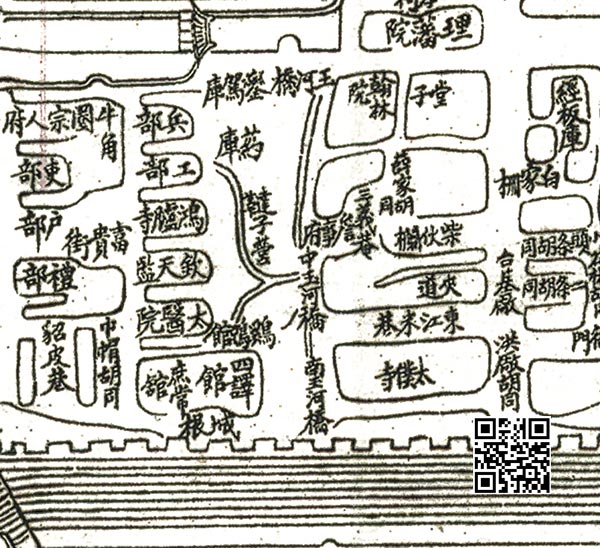 1930年代北京市地图的“御河”一段,“河道”已经标注成道路了