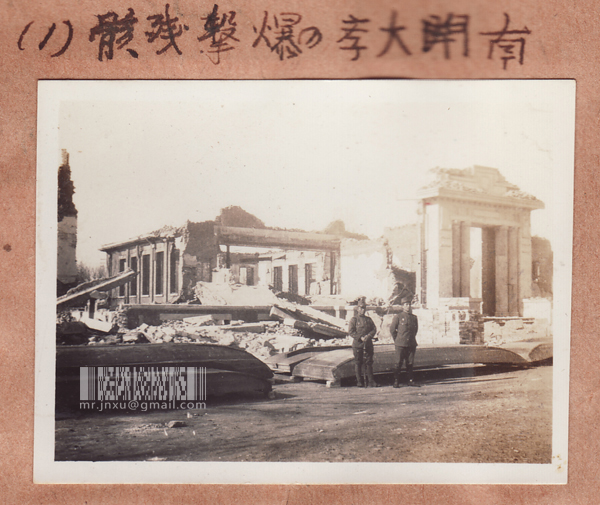 在最近看到的一本这样的相册,原属于一个叫桑原益与的日本军人,他隶属的阿久井部队曾经驻守过北京、天津、济南和太原等地。相册中收录了三张南开大学被轰炸后的照片。