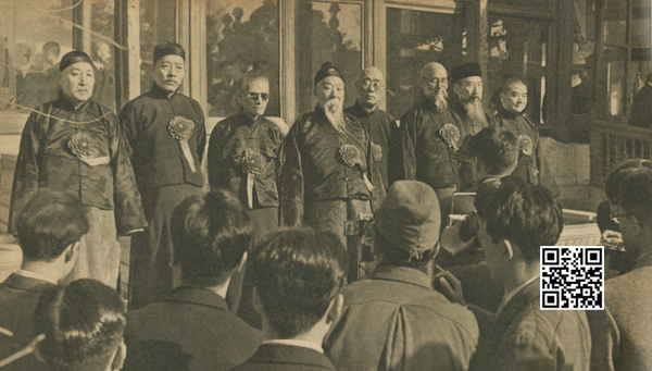 1937年12月14日,北京居仁堂前,傀儡政权首脑,从右至左分别是朱深、王揖唐、汤尔和、董康、江朝宗、王克敏、齐燮元、高凌蔚