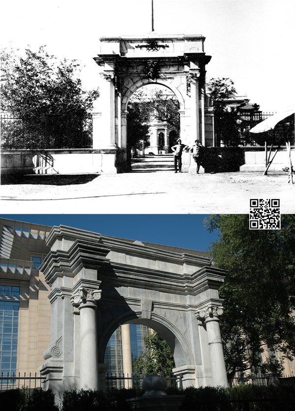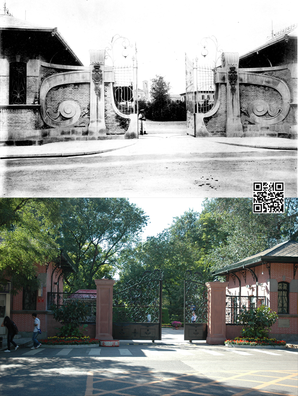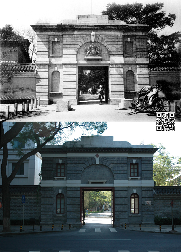原俄国馆大门,现在只剩这个门了,后面是高法。老照片拍于1909年