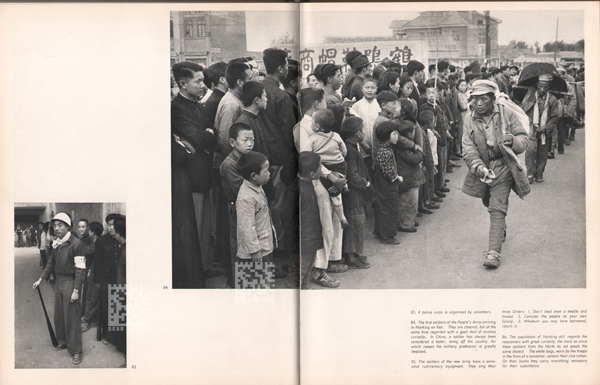 1948年至1949年,布列松为美国《生活》杂志拍片而在中国行走了一年,其中有6个月是在国民党退往台湾之前,6个月在新中国诞生之初,客观地记录了当时中国在变革中的历史瞬间。1956年他精选了144张这期间在中国拍摄的照片,由韩素音女士撰文出版了《两个中国》(From One China to the Other)一书。