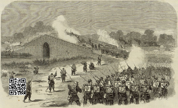 这座桥在历史上出名,还是第二次鸦片战争期间发生在这里的“八里桥之战”。彼时,英法联军已经占领天津,并向北京进犯。僧格林沁麾下蒙古骑兵的冷兵器根本不能和英法联军先进的火器抗衡,先失张家湾,又失通州,最后退守八里桥。八里桥是咽喉之地,过了这里去往京城就是一马平川,因此僧格林沁组织了近三万兵马死守八里桥。1860年9月21日上午7时,英法联军分东、西、南三路向八里桥清军阵地发起攻击。此次作战以法军为主,由孟托班总指挥,东路是雅曼指挥的法军第1旅,西路为格兰特将军指挥的英军。南路主攻,是由科林诺指挥的法军第2旅。关于这次战斗,中、英、法三国都有很详细的文字存世,且基本一致:尽管蒙古骑兵英勇无比,但是在火炮和先进的后膛枪前,最终失败。