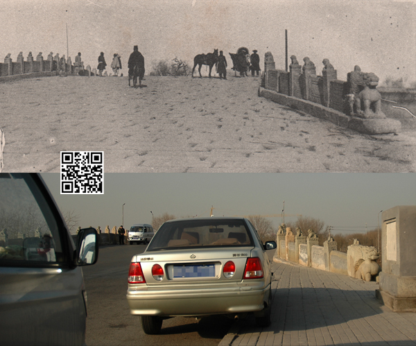 上图是1901年法国人Calmel拍摄的。因为在地铁站旁,很多上班族都把这里当作停车场。百多年前桥上是马车,现在是汽车……两张照片对比能看出哪些望柱上的狮子是老的,哪些是新的。