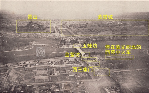 1900年庚子之变后,八国联军占领北京,富于想象的法国人,确切的说是法国远征军,于1901年在西苑(今北海公园)和天津为了解战争损失的情况(一说为了侦查残余的拳匪,我觉得不可信,那么高看的清楚吗!)施放了载人热气球,并拍下多张照片,今天我只选择了西苑、景山和故宫的几张。1911年前的老照片,现在容易见到的,都是在地面上拍摄的,已经包含了大量的信息,是我们了解历史的重要手段,而这些航拍照片包含的信息量更大,视角独特,更加珍贵!特别是上面第三张照片,摄影师在热气球上自西向东拍摄的照片,能看到金鳌玉蝀坊,北海大桥,西三座门,特别是能看停在紫光阁北的西苑小火车。