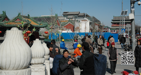 现在的地安门大街,永宁桥上的望柱都被补齐了,庙周围正在拆除其他建筑