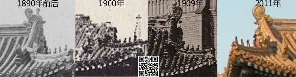 四个时期碑亭鸱吻样式的比较,庚子前的皇家味儿重,更漂亮,后来的就很民间的感觉