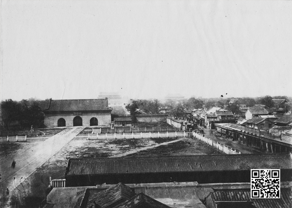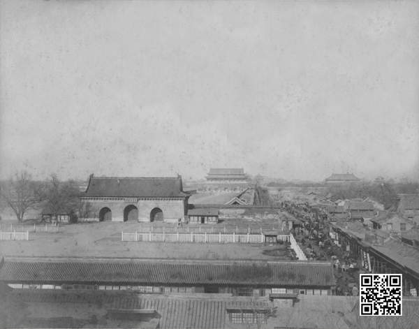 1873年托马斯•查尔德在前门城楼上中轴线偏东向北拍摄的,大清门三门紧闭,中间只有皇上和皇后能走,没有重大活动不开