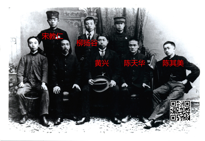 去年一个朋友的画册里需要华兴会的图片,我帮他找了一张。这张是曝光率最高的一张华兴会照片,里面的人物是谁,多数资料里至少会注明前排左一是黄兴,左四是宋教仁;好一点的会再多注一个后排左一是章士钊。那其他的人都是谁呢?