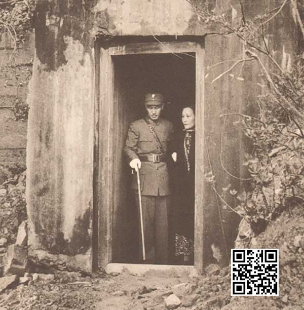 我最喜欢的照片之一,重庆,日本轰炸机飞过后,蒋搀着宋走出防空洞