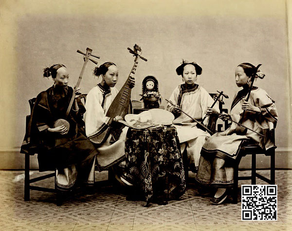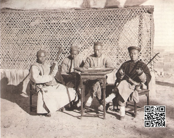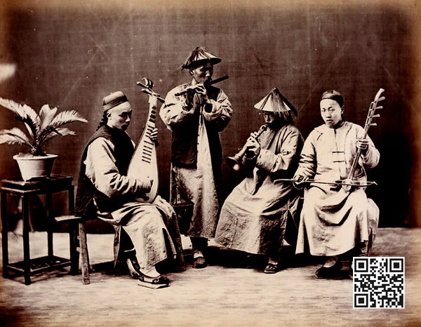 四位男士的演奏,约1870年代,分贝是琵琶、笛子、唢呐和二胡
