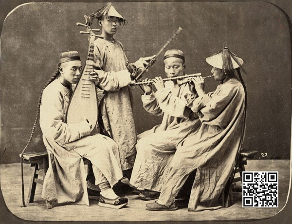 今天看了一张新闻照片,是中国的一位音乐家用蔬菜做的乐器演奏,他用几只胡萝卜和一捆大葱做了个“笛子”……中国的传统乐器历史悠久,而且很有特点,这在外国人眼里很新鲜,不过还是有喜欢的有不喜欢的。前些日子再读马戛尔尼使团1792-1794年来华的资料,马戛尔尼就不喜欢中国民乐演奏,觉得吵,所以回国之后英国国民也没对这些文化产生兴趣,倒是摄影术被发明后,关注才多了起来。之前一直想做了老照片中的民乐演奏专题,原来收集的几张照片不知道存到哪里了,之后重新找了一遍,凑了6张,还有一张几位南方的女士弹阮的找不到了,只能以后再补。