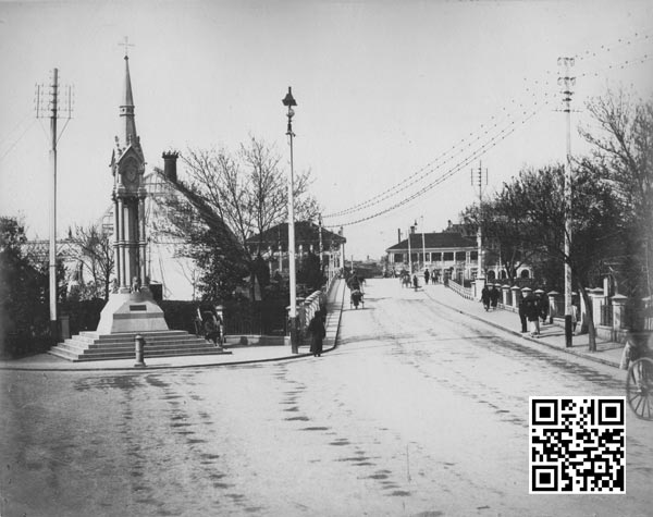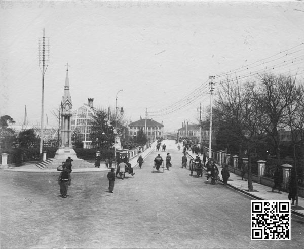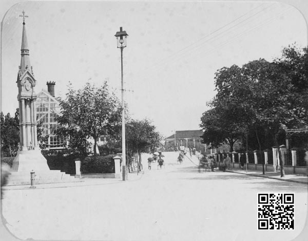 这四张照片能看出上海成长为现代化国际大都市进程的一小段经历。第一张照片拍摄于1880年代初,道路干净整洁,纪念碑前有最早的汽灯;第二张照片拍摄于1900年代初,已经有电报线横跨苏州河,街上多了从日本引进的人力车,煤气灯也换了样式;第三张照片的拍摄年代接近上一张,路灯的样式又变了,纪念碑前多了消防龙头,电报线可能集成化了,最左侧的线杆上线少了;第四张的拍摄时间接近上一张,景观没有大变化,只是路灯好像转了方向。顺便一提,上海最早的煤气路灯安装于1865年,1882年开始安装了电力路灯,而最早安装电力路灯的地方就是英国领事馆到礼查饭店一段,也就是照片中的这段路。