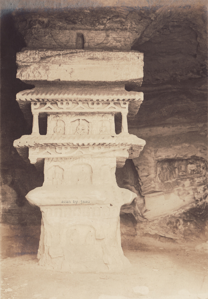 我国的支提塔多见于石窟中,常见阁楼式,从建筑力学角度来说都是充作支柱,既然作为柱子,自然就没了塔刹,就是一段塔身而已。照片中的支提塔在山西大同云岗石窟。