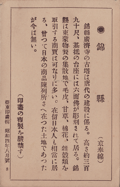 锦县历史悠久,其名始于辽代,现在是锦州市的一部分。城内有座广济寺,始建于辽,不过现在除基座外都是清道光时期重建的了。寺内辽塔为平面八角十三层密檐砖塔,高约70米,是当年辽县的第一高度,也是东北地区比较高的塔了(一般仅有40米左右)。照片里看到的塔历经岁月侵蚀,已经没了棱角,远远的看着像根玉米!1996年当地政府对塔进行了维修,现在看着新多了。塔有收分,看着很是壮美,尤其是残破的时候。查资料发现锦州八景之一是“古塔昏鸦”,“塔”就是指广济寺塔,但这景色也有点儿异类了吧,和“金台夕照”、“银锭观山”比起来似乎通俗不少……