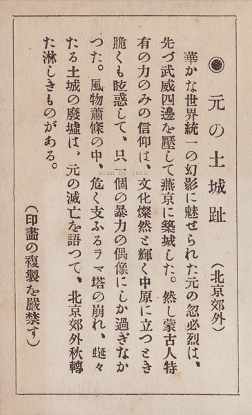 今天介绍的是“老照片里的中国古塔”系列“北京篇”的最后一个,是元土城附近的一座塔。这座塔虽然已经残了,但是从造型上可以看出是一座喇嘛塔,具体特征和结构在之前已经介绍过,从功能上来说这是一座墓塔。墓塔即和尚的坟墓。元以后,藏传佛教开始在中原地区广为流传,尤其是在中国北方地区,很多即使不是信奉藏传佛教的高僧圆寂后也修建喇嘛塔样式的佛塔。无论哪一种墓塔都嵌有塔铭,这是一个很重要的特征。塔铭即塔身或门楣上签的石板,上面会记录墓主人、寺名、时间或生平等信息,相当于墓碑的功能。