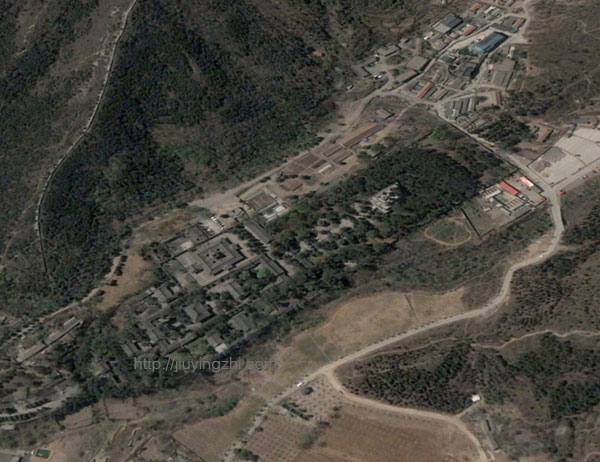 其实照片里还有一座塔,就是罗汉堂屋脊上那座小的覆钵塔。关于覆钵塔,后面会具体接触到。塔传入中国有了很多变形,佛教对塔的敬仰,与对佛的敬仰一样,佛与塔并重,故有“塔即是佛,佛即是塔”之说,在佛殿屋脊上置塔的目的可以想见。