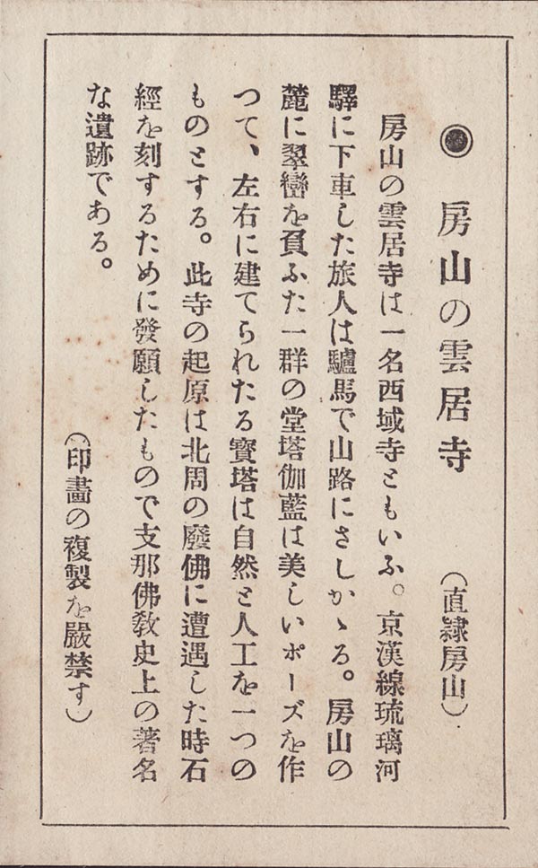 云居寺的塔很多,尤其是石经山上几座著名的唐塔,极具代表性,但是目前我还没发现这套老照片中的云居寺唐塔,只有原来寺院中的两座辽塔,分别在照片的左侧和右侧,其中右侧的南塔在1942年被毁,现在仅存北塔,不过听说南塔将复建。