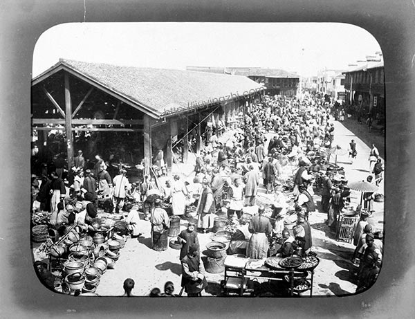 1900年左右的三角地菜市场,和上两张比是从另一个方向看,大棚再次改造