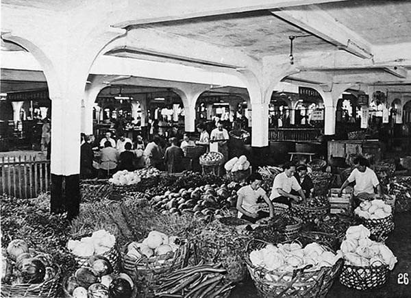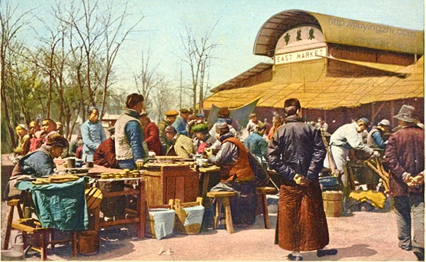 北京虽然没有租界,但作为帝都,也有不少驻华机构和洋人,这种现代意义上的菜市场也少不了,1902年法国人建成的“东菜市”(East Market)即为其一。东菜市即后来的东单菜市场,位于东单北大街南口的西北角,也就是现在东方新天地的东半部分。那时候长安街还没有打通,从东长街到东单路口再往东就是小胡同了,转北走东单北大街才是大路,东菜市就位于这个把角,可见地理位置之优越,自然也生意兴隆。而且那里离东交民巷使馆区、御河(今正义路)边上的六国饭店、长安街边上的北京饭店都很近,为满足去采买的外国人,市场里还有专门卖洋酒、奶酪、巧克力等进口食品食材的摊位。1937年北京沦陷后,日伪政府对市场进行了整修,改成后来拱顶的样式,上世纪五十年代公私合营后,东单菜市场也变成了国营菜市场。作为北京最老的菜市场,东单菜市场早已成为无数北京人的生活记忆。
