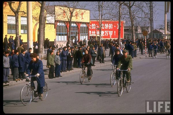 《生活》杂志摄影师拍摄的东长安街,背景左侧的是东单菜市场,右边写着“东单食堂”的里边就是上面那张张祖道老师拍照的地方