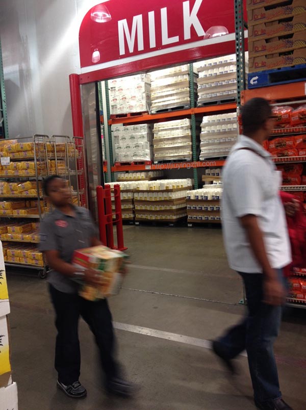 阿灵顿五角城购物中心旁的Costaco内摆放牛奶的房间
