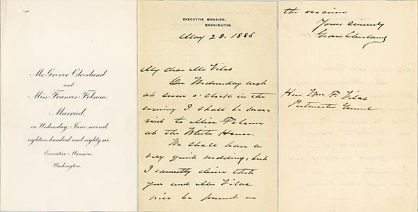 数量极少的克利夫兰婚礼邀请函及他写给邮政总长维拉斯邀请他出席婚礼的亲笔信