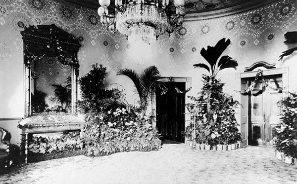 为克利夫兰总统婚礼布置的白宫蓝厅