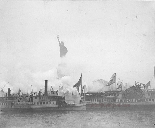 尽管塑像已经完工,但是美国那边的塑像底座工程却进展缓慢,因为受当时经济衰退的影响,从美国民众那里募款很艰难,媒体也纷纷发表评论,认为法国人既然要送我们一尊铜像作为礼物,为什么不连同底座一起送了?就在工程资金最紧张的时候,后来设立了普利策新闻奖的约瑟夫·普利策(Joseph Pulitzer, 1847-1911)发布募款广告,声明无论为这个项目捐多少钱都可以把名字印在他的《纽约世界报》(New York World)上。这一呼吁立刻获得读者的响应,很快所需资金就到位了。1885年6月17日,自由女神像的部件从法国运抵纽约,次年4月底座工程完工,最终,1886年10月28日,时任美国总统克利夫兰主持了落成典礼。张荫桓在日记里说这一天“适大雨泥泞”,原本要举行的焰火燃放推迟到了11月1日。