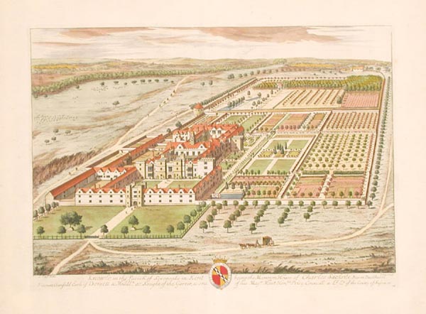 威士的全名是莱昂内尔·萨克维尔-威斯特(Lionel Sackville-West, 1827-1908),第二代萨克维尔男爵。他父亲是第五代德拉沃尔伯爵乔治·萨克维尔-威斯特,他母亲是第三代多塞特公爵约翰·萨克维尔的幼女伊丽莎白女爵(Lady Elizabeth)。看过《唐顿庄园》的人都知道,爵位和遗产继承在英国是很厉害的,从威士父母的家世就能看出来他的社会地位和经济条件不一般。张荫桓拜访的这座乡居位于肯特郡的“七橡树”,即著名的诺尔庄园(Knole House)。这座庄园始建于1456-1486年间,后不断扩建。1566年,诺尔庄园被伊丽莎白一世女王赐给自己的外甥托马斯·萨克维尔(Thomas Sackville),之后的萨克维尔系和多塞特系的各种贵族都出自他的血统。张荫桓说“英爵男女并袭,英使新袭伯爵,系母氏所遗”,威士的这座乡居便是从他母亲那里继承下来的。张荫桓还说威士的祖上是“俺麻士得”,我们现在一般翻译作阿美士德,即嘉庆二十一年(1816)曾带团访华的那个阿美士德。阿美士德在1839年迎娶了第三代多塞特公爵的女儿玛丽·萨克维尔女爵(Lady Mary Sackville)为继妻,因此得以诺尔庄园为家,1857年也是在这座庄园去世。需要八卦一下的是,玛丽的继母,第五代普利茅斯伯爵的遗孀莎拉·阿契尔是阿美士德的第一任妻子,也就是说莎拉、玛丽“母女”分别是阿美士德的两任妻子,当然了,没有什么可以阻挡两颗相爱的心。
