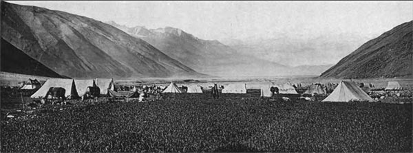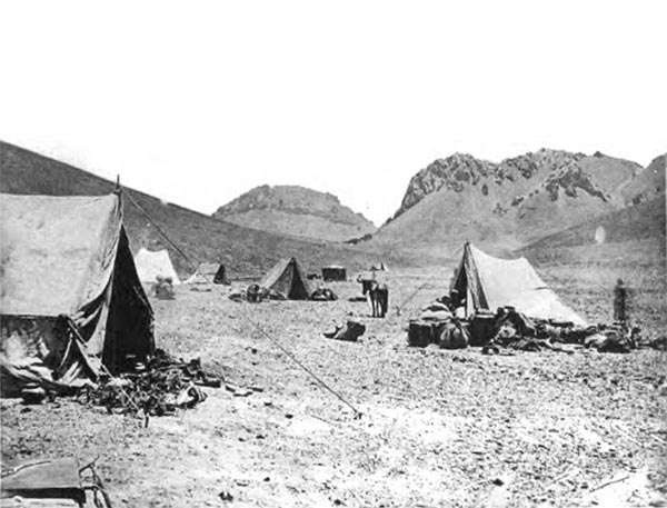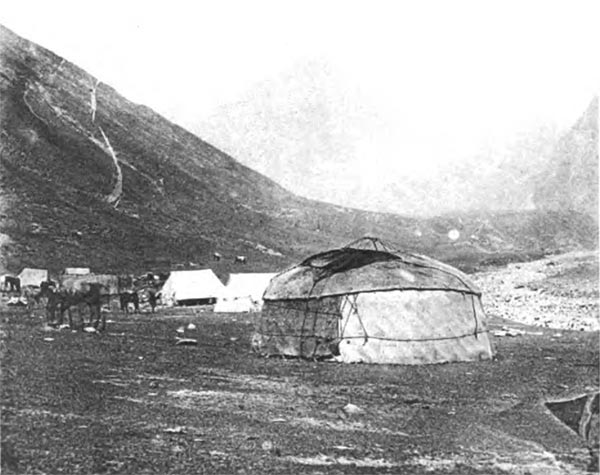 实际上亨德森在桑株偷偷拍了几张照片,怕被人发现就躲在帐篷里点着蜡烛进行操作,然后把玻璃底板和相纸放到帐篷顶上去显影,但他的这番尝试失败了。此外沿途高海拔地区的气候环境也让拍摄变得十分困难,硝酸银溶液有时会失效,用来冲洗照片的水很快就结冰,到海拔4500米附近的地方火棉胶在塞子拔开的一瞬间就汽化了。尽管如此亨德森还是努力挑战极限,其中两张扎营的照片注释拍摄于海拔5600米(18500英尺)左右的Lak Zung和Lingzi Thang,不过从书中的叙述和照片的内容来看,实际的拍摄地点应该是阿克塞钦盆地里较低的地方,但这片地区海拔几乎都在4000米以上,所以亨德森应该算是早期进入中国的外国摄影师里面拍得最高的人之一。