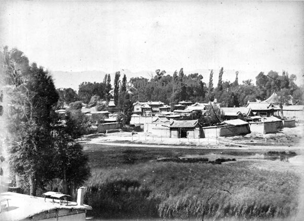 不过目前已知最早一组带着照相机走西部穿越路线的俄国人是一支规模较小、成果也不太显眼的队伍。1874年,俄国总参谋部派出一支小型考察队,目的是探索从四川到斋桑(Zaisan,现属哈萨克斯坦)之间可行的陆上通道。这番行动的背景是当时俄国与中国日益增长的茶叶贸易。鸦片战争以前,俄国市场上的中国茶叶大都由俄国商队从恰克图经陆路运入,到1850年代,已有一些俄国商人非法进入中国内地,直接到汉口一带购茶。《天津条约》后,俄国人在内地的茶叶贸易活动规模升级,1860年代初,他们开始在汉口和九江建立砖茶工厂,自行深入茶产区直接从茶农手中收购茶叶,加工后经水路运往天津,再由恰克图运回俄国。当时俄国对经陆路输入的茶叶征收的进口税远低于经海路进口的茶叶,因而除了传统的天津–张家口–蒙古–恰克图线,俄国人也希望找到一条让茶叶从产地直接西行的路线。1851年中俄《伊塔通商章程》签订后,俄国取得了在新疆伊犁和塔城两处进行贸易的权利,此后在1871年又出兵占领了伊犁。如果能将中国内陆出产的茶叶经甘肃、新疆运到斋桑泊,就可以走水路到达北面的鄂毕湾或向西进入里海、高加索地区,陆上运输的时间将大大缩短。从后来的记录来看确实有大量茶叶经这一路线运往上述地区,但中俄茶叶贸易的主要路线还是经恰克图,其兴盛一直持续到1910年代。十月革命后,1918年俄国停止从中国采购茶叶,这时现代化的欧亚大通路西伯利亚铁路也贯通了。