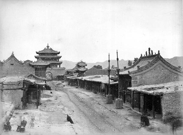 当英国人以英属印度为基地在中国西部地区积极探索并伺机扩张势力的时候,北边的俄国人也不敢闲着,事实上由于俄国的地缘优势以及与清国之间长久而特别的条约关系,俄国人在中国尤其北方地区的考察活动的规模远比英法两国来得大。从1870年代开始,不断有考察队在从新疆一直到东北的广大区域上进行考察活动,其中规模最大、活动时间最长的几支有:探险家普热瓦尔斯基1870-1885在中国境内的四次考察;来自西伯利亚军区参谋部的彼夫佐夫1876-1891年在新疆和蒙古的三次考察;地理和民族学家波塔宁1876-1899年对中国西部地区的五次考察;曾在普热瓦尔斯基考察队里工作过的罗勃罗夫斯基和科兹洛夫在1890年代各自带队的对新疆、藏北以及黄河和长江源头的几次考察(科兹洛夫后来在哈拉浩特古城挖掘了大量西夏文物运回俄国);此外还有很多规模较小的考察活动,总之那一时期俄国人在中国西部和北部的活动范围很广,勘查的内容很宽泛,留下的报告和著作也相当多。到1880年代,由于干版法技术的成熟,照相设备的便携性增加,照片开始较多地出现在探险家和考察队回国后出版的作品里,如普热瓦尔斯基1883-1885第四次考察的记录《从恰克图到黄河源头》(От Кяхты на истоки Желтой реки,1888年出版)包含29张照片;地质学家奥勃鲁切夫1892-1894年从恰克图出发,经北京、山西、甘肃等省至新疆伊宁的考察活动也拍摄了照片,除了常见的城市景观、人像,还有山区的地质面貌、黄土高原地区的窑洞等。