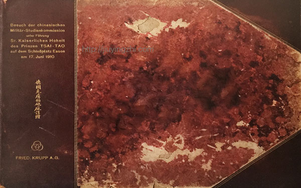 最早看到1910年贝勒载涛率队往日、欧洲各国、美考察陆军的影像资料是他们在奥匈帝国的两张合影及载涛、李经迈、良弼、田翰章、哈汉章、刘恩源的签名橱柜照,后来又陆续看到考察团一行在日本(于大清国驻日本领事馆内)、美国、法国和俄罗斯的照片,渐渐从图像上补全清末这次重要但没什么实效的军事考察。以上提到的照片我都曾在博客上陆续整理发出,11月10日又看到一本载涛一行在德国克虏伯工厂考察的照片,是克虏伯公司制作并送给考察团成员的礼物,内有照片14张(银盐纸基,并非持有人之前宣称的蛋白纸基)。关于这次考察的背景在我之前的博文里已经写得很清楚,也有很多学者写过文章,不再赘述,对我来说放在这里算是又收集到一片那次考察的拼图,有义务汇集整理。更重要的是这本相册里的一张合影标示了几位中国人的名字,这对以后找寻、辨认他们的其它照片很有帮助。