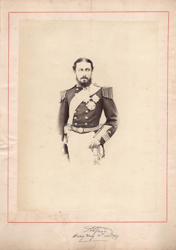 汤姆逊拍摄的阿尔伯特王子,这张出自当时的照片纪念册,还有王子本人的签名