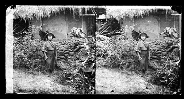 第二个原因,我认为是立体照相机的特性决定的。这种相机轻便,易于携带,可以不用三脚架,适合在野外不平坦的地方,或更快捷的拍摄,且立体相机可以通过遮挡一个镜头只拍摄底片的一半,再遮住另一个镜头拍摄另一半,这样一张立体照片的底片上就可以拍摄两张照片,是对底片最大效率的运用。去偏远的地方行摄,能携带的玻璃板数量有限,他不得不以最大的效率之用。比如从现存维亚科姆图书馆的汤姆逊底片来看,在可以确定摄于台湾的照片共80张,其中大尺寸的底片只有8张,而立体照片底片有72张,汤姆逊从打狗(高雄)上岸,深入山林访问部落,在那样多山的环境里拍摄就能显出立体相机的优势。