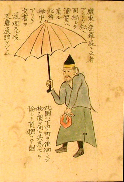 当然,我知道这个推导过程还很脆弱,不过在图像方面我联想到三个例子,其一是罗森。罗森是广东人,与美国传教士卫三畏(Samuel Wells William)熟识。卫三畏在1854年美国叩开日本国门的“黑船事件”中担任佩里将军的翻译,他带上了罗森。带上罗森是对的,当时接触的日美双方都不大懂对方的语言,罗森虽然也不懂日语,但是他可以和日本人用汉字笔谈,然后再转译给美方,毕竟日本文化和中华文化有很紧密的联系。罗森在他后来发表的《日本游记》里虽然没有什么日美双方谈判的细节,但日本和美国的档案里都不止一次提到过他的名字。