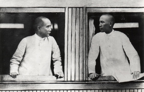 要说老袁和莫理循这张合影照片的篡改还算有强烈的暗示性和导向型,那还有一些对历史影像的修改真的是有画蛇添足的愚蠢。1982年值国民党成立七十周年之际,台湾方面推出了一套介绍国民党历史的宣传照片,其中有一张注为“北伐时孙文与蒋中正在广州火车上的合影”,画面中孙、蒋二人分别从两个相邻的车窗中探出头来,相视凝望,蒋手中还有一支铅笔和一张地图,展现了这对革命师生的深厚情谊,突出了蒋在孙逝世后的继承人正统性。但实际上这张照片也是造假的,原照来自中国电影界的元老黎民伟在1912年7月拍摄的纪录片。当时是蒋介石乘火车陪同孙中山北上考察,拍摄时的真实场景是这样:蒋位于照片上左边的车窗,正向左看,而孙位于右边的车窗,正看着摄影师。好事者为了在图像上凸显两人的关系,将两人互换位置,还对孙施以换头术!好在,现在台北的蒋中正纪念馆已经修正了这一错误,用了纪录片中的另一帧影像来替代。