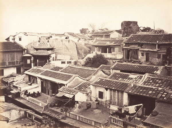 从约翰·汤姆逊1870年拍摄的照片中可以一窥这座水仙宫的旧貌:排布紧密的房屋簇拥在一块巨石周围,一座小巧的庙宇嵌在上面,后面的四个字仅可见“水天”二字。这么密集的建筑中除了民宅,主要是货栈。水仙宫所在的鹭江边本是一座码头(今和平码头),厦门开埠后这座码头周围盖起了很多货栈,加之北面是市场,因此人口密度较大,按现在的标准来说这一带有严重的安全隐患。道光十二年的《厦门志》里有一首陈迈伦的诗《水仙宫》:鹭门禹庙落成初,胜影层开接太虚。斜磴人来悬壁上,危亭极目大荒余。近城烟雨千家市,绕岸风樯百货居。泽国久无烽火警,一声长啸海天舒。首句中“禹庙”即指水仙宫,说明道光年间曾重建。近日我在1895年发行的第28编《日清交战录》看到一张标注为“宁波火药库”的照片,虽然图片模糊,但图中巨石上的“水天”二字却非常显眼,说明照片实际拍摄的是厦门水仙宫,只不过已经是遗迹了。