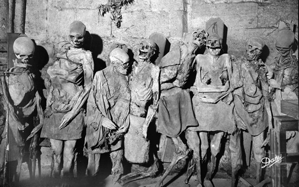 出此,至一礼拜堂,名曰“贤米士爱”。堂不甚大,惟左偏小屋立有男女老幼尸骸二十一具,系于十七年前民变掘出者。各处死尸皆已泥化,惟距城四里许所出之尸,皮发筋骨皆存,衣服亦有粘留之处,形状可见。有张口者,闭目者,抱肩者,扶胸者,形象不一。竟有弯腿俯首者,据土人云:“乃死而复苏,欲出不得故也。”各男女名姓,由何症而死者,司堂人皆能细陈。盖墓前立有石碣,注明某人何年月日由何病而死。中有一家夫妻,三子一女,系误食蘑菇而毒死者。其老者百岁,少者几月,皆系六百年前或数十年前之人。堂之对面,石塔高三十八丈,步石梯二百三十二级,至其中腰盘顶,四望无涯,山河毕见,塔顶尖形直立。回时街市闲游数里,过一大石桥,长约一里,宽逾六丈。河名“路旺”,碧浪溶溶,舟艇密密。