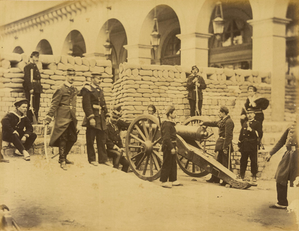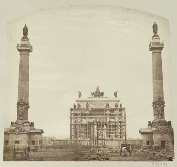 初四日癸巳,终日阴晴不定。未初,随星使乘车至廒北巷拜德克碑未遇。途次,见万洞坊之铭胜柱已被叛勇打坏。所有烂铜,皆以车载去重修。是柱系其先王拿破仑第一战胜他国,将所获之铜炮改铸者也,高九丈,周四丈,上下雕刻各国旗帜炮位,甚为精巧。不意败坏至此,有不令人生感耶?其余被焚之土石灰烬,皆扫除清理,以待重修。闻现募匠役已有五万余人,大兴土木,剋日完工,自必焕然一新也。