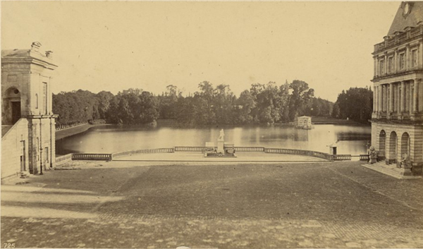 叫“白马”的庭院即Cour du Cheval Blanc,主楼前的阶梯形似马蹄状,从这里进入主楼后右转就到了Cour des Fontaines,这里有座三角形的小湖Étang aux carpes,直译过来就是“鲤鱼塘”,所以德彝说在这里可以喂鲤鱼。现在国内很多新修的公园里都有养着锦鲤的水池,也有专人在旁售卖鱼食,当然大白馒头和面包也常见游客携带,总之撒到水里,“群鱼骤至而争啖”,和德彝一百多年前在法国看到的情景一样。