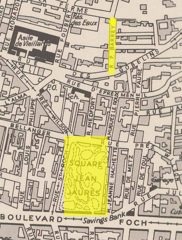 “阿卦立雅”即现在的圣洛克广场(Square Saint Roch),当时叫做Square Jean Jaurès。这个位置在十六世纪欧洲鼠疫爆发期间主要用来集中隔离被感染的村民,待勒阿佛尔的医院建立起来后,这个地方就被荒置了,1868年,这里被改为一座公共花园,还建了一座4000平米的水族馆,也就是德彝看到“水狗”(我猜应该是海狗)和三十余种奇形怪状鱼的地方,不过他看到的中空的乱石层叠的小山并不是一座真的山,而是外观做成石头样子的房子。水族馆1893年被拆除,公园在1944年盟军的轰炸中被毁,战后重建。
