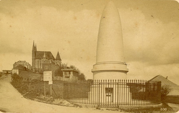 我在找到德彝记载的这个“形如中土坟墓”的“白塔”照片时感到很惊讶,似乎欧洲很少有这种炮弹样式的纪念碑,当然是我孤陋寡闻,这座纪念碑又被称为“悲伤的糖块”(Le Pain de Surce),因为十六世纪甘蔗贸易盛行时,在白糖的除杂质过程中就是放在一个这种锥形的容器中静置,因此最后产出的糖块就是这个形状,直到十九世纪才出现我们熟悉的方糖。拿破仑的表妹斯蒂芬妮(Stéphanie Rollier)1805年嫁给了孔特将军(General Comte Lefebvre Desnoettes),这位将军1822年在爱尔兰海岸遭海难丧生,将军遗孀在海边挥舞这样的“糖块”警告那些水手要注意安全,就建了座这个形状的纪念碑,她去世后也葬在这里。德彝说的小礼拜堂应该是距离那座纪念碑不远,位于圣阿德斯悬崖上的Chapelle Notre-Dame des Flots,1857年奠基,两年后落成。